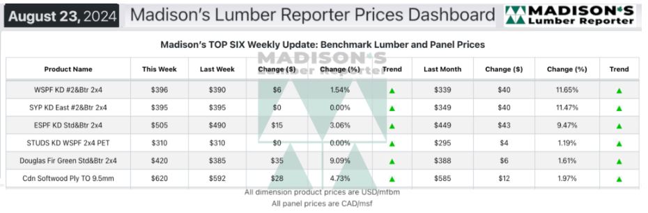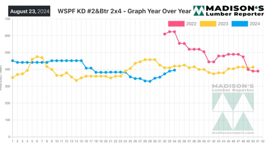 In the week ending August 23, 2024, the price of Western Spruce-Pine-Fir 2×4