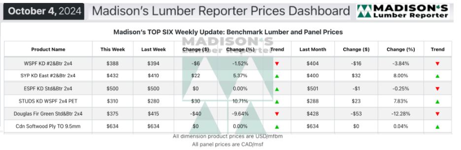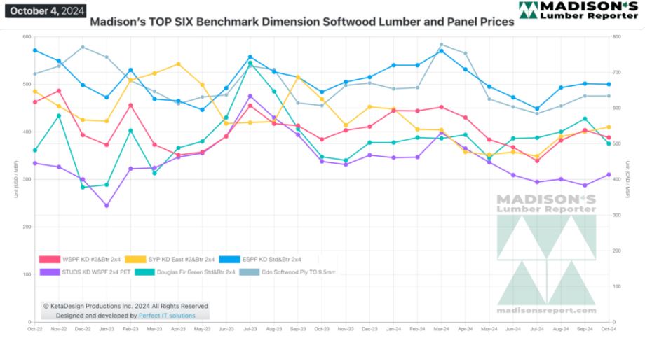 In the week ending October 4, 2024, the price of benchmark softwood lumber