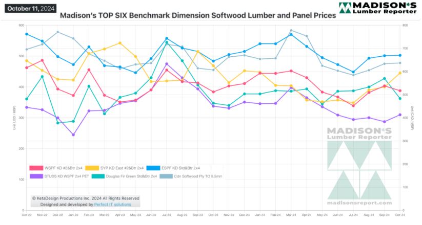 MADISON’S BENCHMARK TOP-SIX SOFTWOOD LUMBER AND PANEL PRICES: MONTHLY