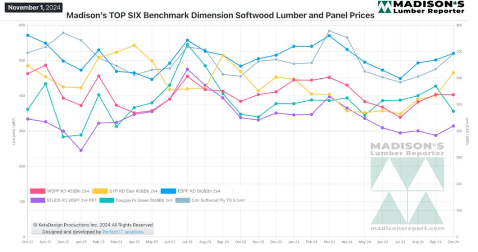 MADISON’S BENCHMARK TOP-SIX SOFTWOOD LUMBER AND PANEL PRICES: MONTHLY