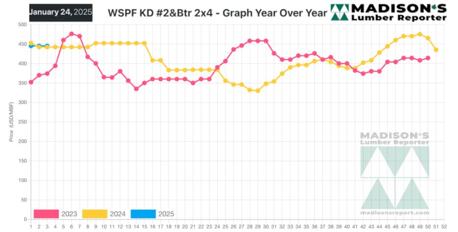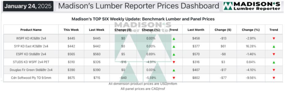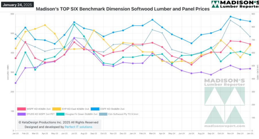 In the week ending January 24, 2025, the price of benchmark softwood lumber
