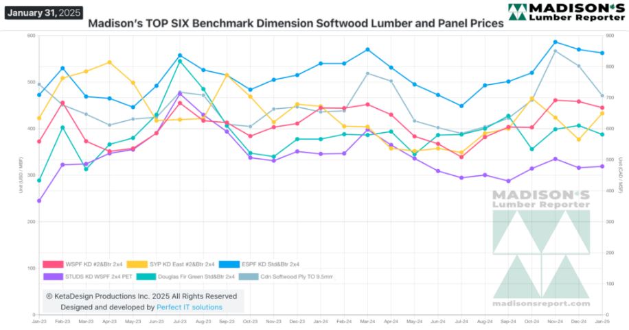 MADISON’S BENCHMARK TOP-SIX SOFTWOOD LUMBER AND PANEL PRICES: MONTHLY