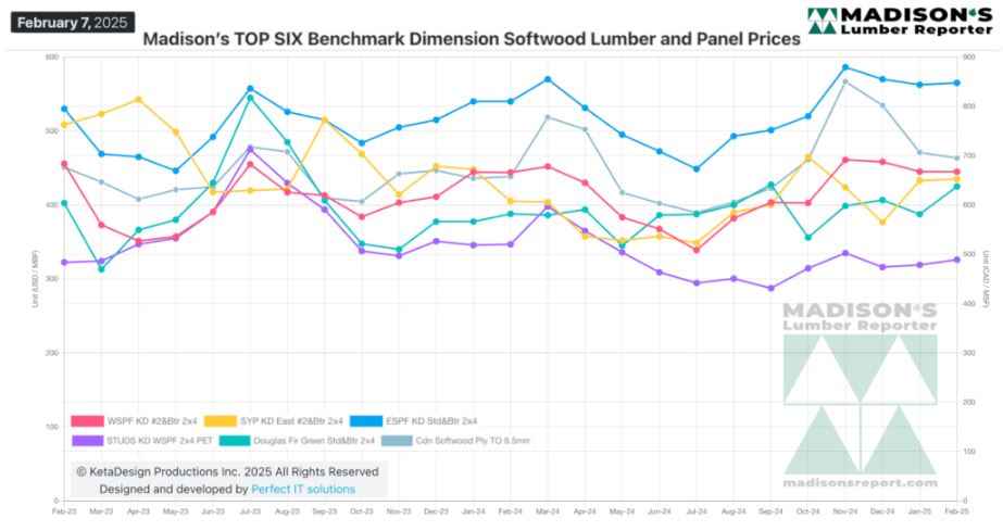 In the week ending February 7, 2025, the price of benchmark softwood lumber