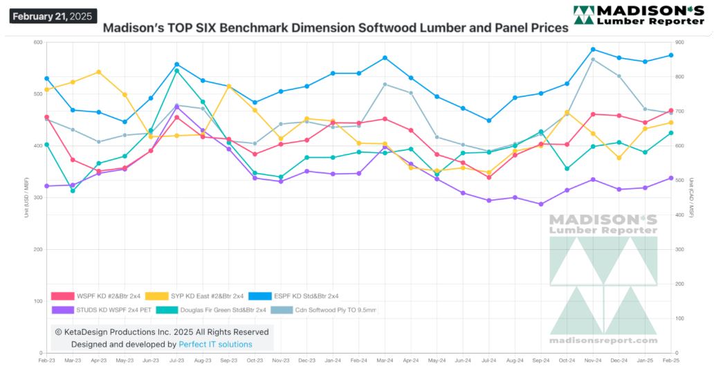 MADISON’S BENCHMARK TOP-SIX SOFTWOOD LUMBER AND PANEL PRICES: MONTHLY