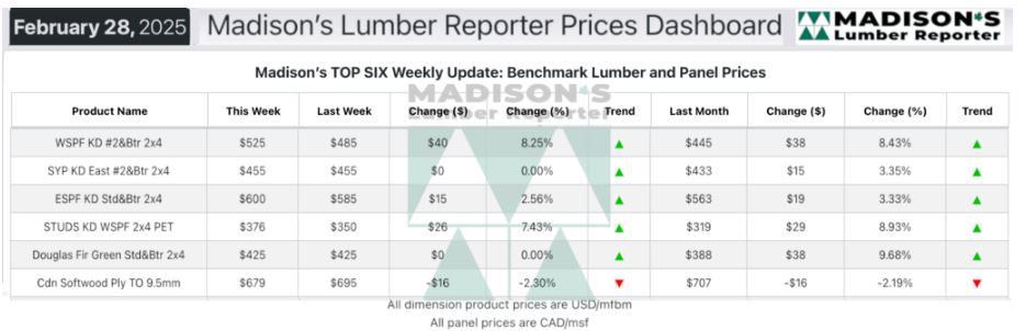 In the week ending February 28, 2025 the price of Western Spruce-Pine-Fir