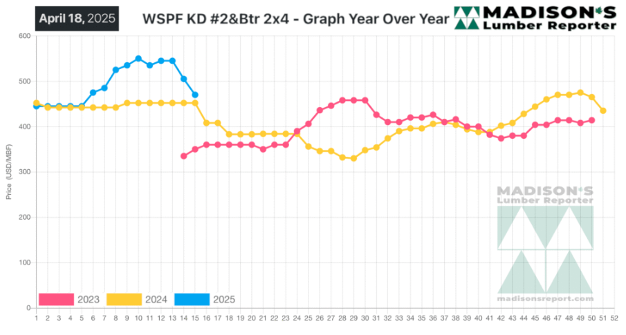 Western Spruce-Pine-Fir 2×4 #2&Btr Kd (Rl) For The Week Ending April 18,