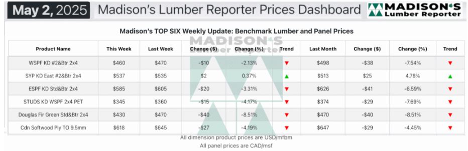 In the week ending May 2, 2025, the price of benchmark softwood lumber item