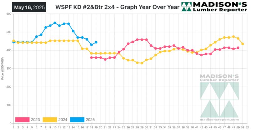 Western Spruce-Pine-Fir 2×4 #2&Btr Kd (Rl) For The Week Ending May 16, 2025