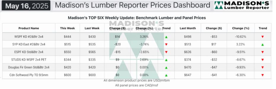 In the week ending May 16, 2025, the price of benchmark softwood lumber item
