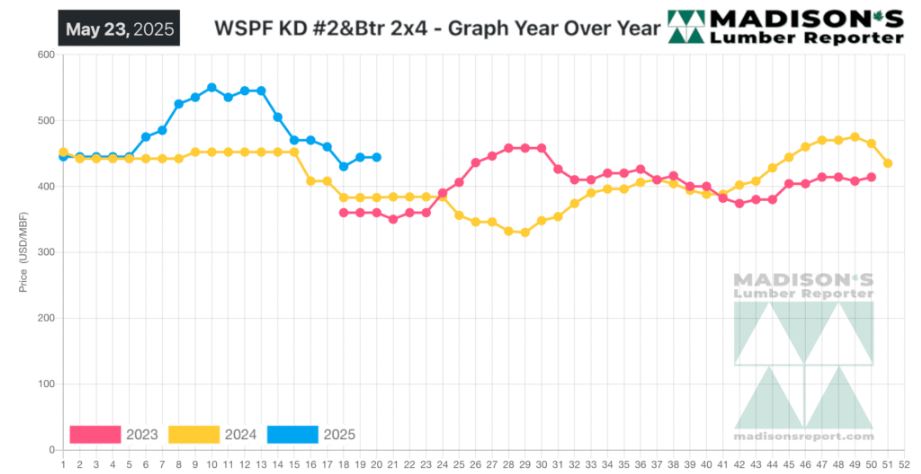 Western Spruce-Pine-Fir 2×4 #2&Btr Kd (Rl) For The Week Ending May 23, 2025