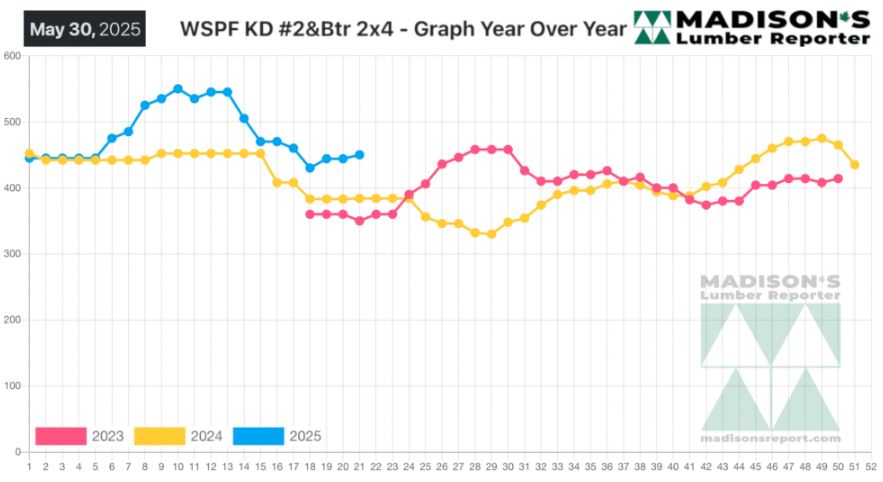 Western Spruce-Pine-Fir 2×4 #2&Btr Kd (Rl) For The Week Ending May 30, 2025
