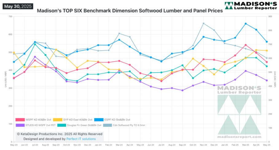 In the week ending May 30, 2025, the price of benchmark softwood lumber item
