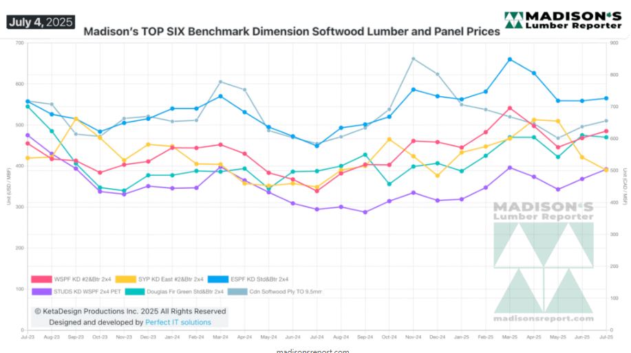 In the week ending July 4, 2025, the price of benchmark softwood lumber item