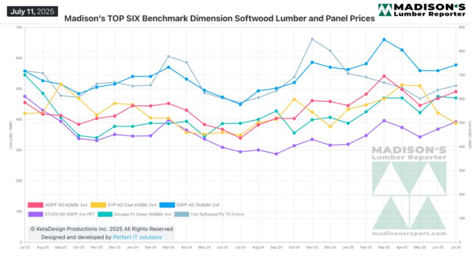 In the week ending July 11, 2025 the price of Western Spruce-Pine-Fir 2×4