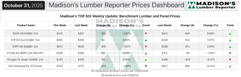 In the week ending October 31, 2025 the price of Western Spruce-Pine-Fir 2×4