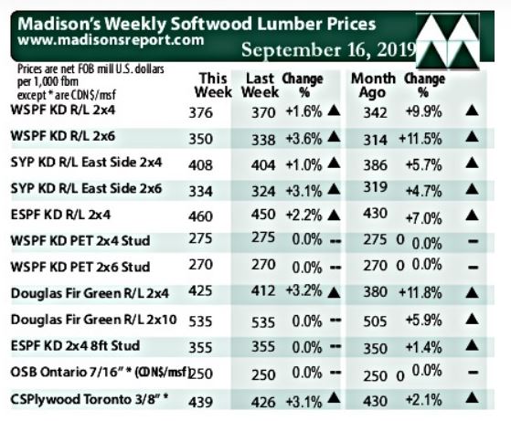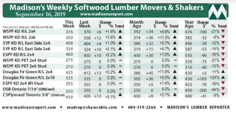 U.S. softwood and panel markets - week 36, 2019 ( September 10,