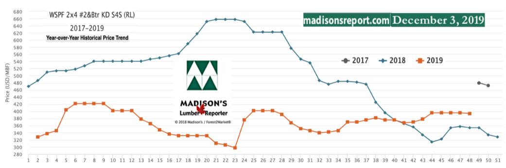 Compared to historical trend, last week’s WSPF 2×4 #2&Btr price