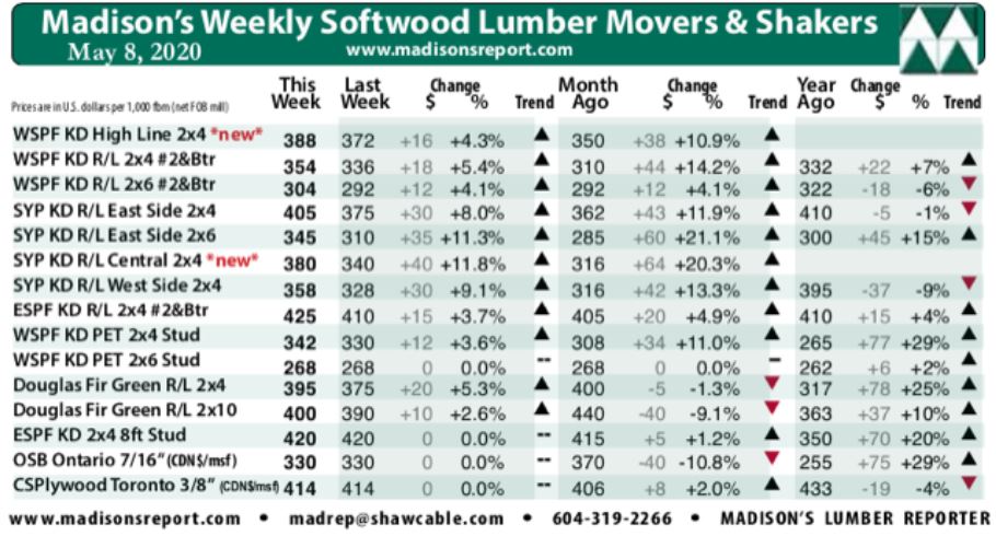 Canada softwood and panel markets - week 17, 2020 (May 8,