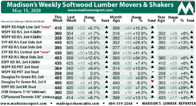 Canada softwood and panel markets - week 18, 2020 (May 15,