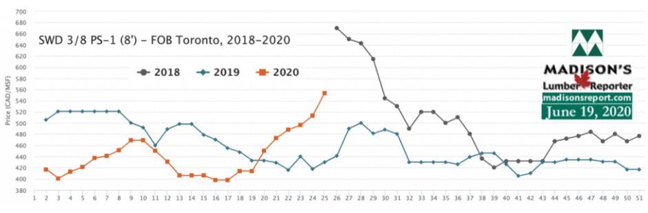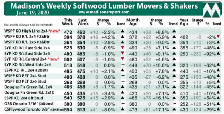U.S. & Canada softwood and panel markets - week 23, 2020 (Jun