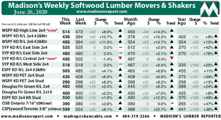 U.S. & Canada softwood and panel markets - week 24, 2020 (Jun