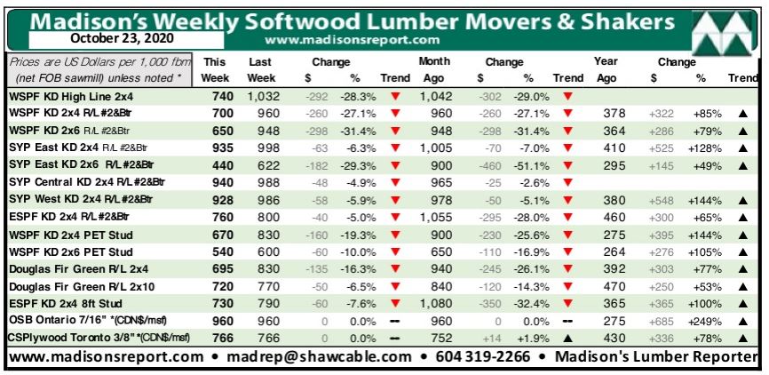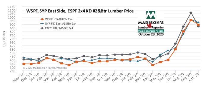 For the week ending Oct. 23, 2020, the price of benchmark softwood