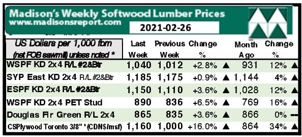 U.S. softwood and panel markets - week 7, 2019 ( February.