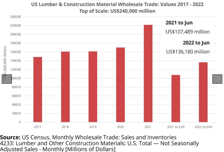 US Total and Single-Family Housing Starts vs. Madison's Benchmark Softwood Dimension Lumber and Panel Prices: 2019 - 2022 US Total and Single-Family Housing Starts vs. Madison’s Benchmark Softwood Dimension Lumber and Panel Prices: 2019 - 2022 (CNW Group/Madison's Lumber Reporter) To subscribe to Madison's Lumber Reporter, simply fill out an order form here: https://madisonsreport.com/subscribe/ Regarding the lumber market and current prices, into the latter weeks of October mild weather in many of the densely-populated areas of the US provided the opportunity for an increase in construction activity. As such, demand for dimension lumber and other solid wood building materials brought a bump upward in lumber prices, due to limited supply in the field. Sawmills and wholesalers both had been keeping inventories low in expectation of true winter and the end of most housing construction until spring. As October drew to a close, sawmills in the Pacific Northwest had established order files into the first or second week of November. This is quite strong for the time of year, when lumber demand is traditionally dropping off. As well, significant production curtailments at several large British Columbia lumber producers helped keep supply and demand in balance, also keeping softwood lumber prices flat. Most of these operators cited high log costs vs lower lumber prices as the reason for taking this downtime. Experiencing drops during the normal seasonal slowdown, in the week ending December 09, 2022, the price of benchmark dimension lumber item Western Spruce-Pine-Fir 2x4 #2&Btr KD (RL) was US$390 mfbm, said weekly forest products industry price guide newsletter Madison's Lumber Reporter. This is down by -$10, or -3%, from the previous week when it was $400 and is down by -$96, or -20%, from one month ago when it was $486. Compared to the same week last year, when it was US$750 mfbm, the price of Western S-P-F 2x4s was down by -$360, or -48%. Compared to two years ago when it was $744, that week's price is down by -$354, or -48%. US Lumber & Construction Material Wholesale Trade Values: 2017 - 2022 US Lumber & Construction Material Wholesale Trade Values: 2017 - 2022 (CNW Group/Madison's Lumber Reporter) Regarding new housing construction, above all else the most important thing to keep in mind is that the single largest cohort of first-time home buyer right now are Millennials. And there are more Millennials than Baby Boomers, so expectations are for 15 years of robust demand for housing simply due to demographics. Not to mention that US housing was underbuilt compared to population for ten years following the housing crash of 2006. As well, the existing housing stock is beginning to age out, with a large number of those home at or approaching end-of-life. Whether for the sustained increase in home-buying demand of those entering their early 30s over the next 15 years, remodelling or reconstruction of aging existing homes, or rebuilding after extreme weather events, the need for solid wood building materials will be unabated in the coming years. As such, lumber prices will continue to be an important leading indicator for residential construction and building activity. Established in 1952, Madison's Lumber Prices is your premiere source for North American softwood lumber news, prices, industry insight, and industry contacts. The weekly Madison's Lumber Reporter publishes current Canadian and US construction framing dimension lumber and panel wholesaler pricing information 50 weeks a year and access to historical pricing as well. Madison's offers a variety of products to meet your information needs regarding the North American forest products industry including: Madison's Lumber Prices: https://madisonsreport.com/products/madisons-reporter/ Madison's Heating Wood Pellet Prices: https://madisonsreport.com/products/madisons-north-american-heating-wood-pellet-price-report/ Madison's British Columbia Coast Log Prices: https://madisonsreport.com/bc-coastal-log-prices/ Source: Newswire |