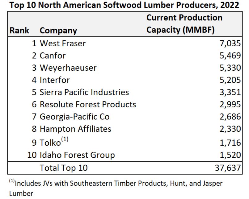 and 2023 appears to show similar numbers according to West Fraser 2022