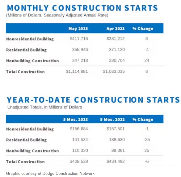 US Construction starts increase again in May following brief April decline[Jun 20, 2023] |