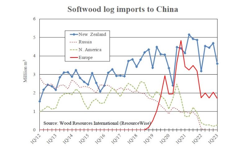 imported about 12 million m3 of logs and lumber (rwe) in the 1Q 2023, nearly