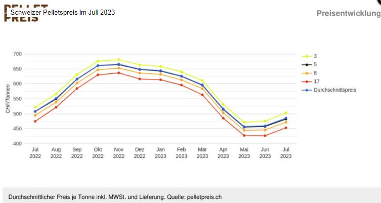 Swiss pellet price in July 2023 rose by