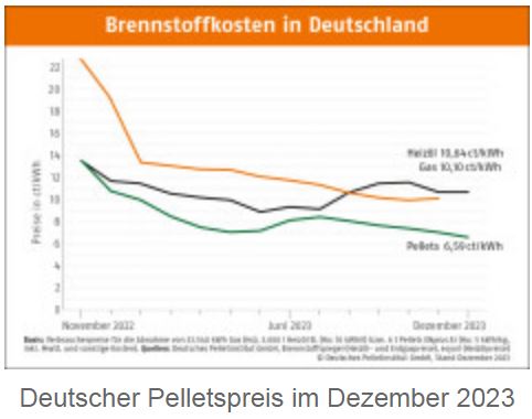 Berlin - As temperatures rose in mid-December, the price of wood pellets fell again. According to the German Pellet Institute (DEPI), a tonne (t) of the fuel currently costs an average of 329.25 euros. Compared to the previous month, this is a decrease of around 6.2 per cent. Pellet heaters currently pay 6.59 cents per kilowatt hour of heat from pellets. The price advantage of around 38 per cent compared to heating oil and around 34.8 per cent compared to natural gas remains at a stable high level. Wood pellets will not be affected by the upcoming increase in CO2 prices for fossil fuels in the future either. The festive season is just around the corner and the year is drawing to a close. "A time when timing is of the essence for any orders - be it the last presents or wood pellets! As unstable winter weather can set in quickly and cases of illness in the trade can lead to longer delivery times at short notice, clever pellet theisers should order in good time before the festive season so that the fuel supply is also secured between the years," recommends DEPI Managing Director Martin Bentele. The average annual price for wood pellets in Germany was €389.78. This shows that, as with all energy sources, the price high in summer 2022 due to the war in Ukraine was an exception. Regional prices German pellet price in December 2023 with purchase of 3 tonnes in southern Germany: 337.24 euros per tonne in central Germany: 348.23 euros per tonne in northern and eastern Germany: 351.20 euros per tonne German pellet price in December 2023 for a purchase of 6 tonnes in southern Germany: 323.76 euros per tonne in central Germany: 330.09 euros per tonne in northern and eastern Germany: 335.53 euros per tonne Larger quantities (26 tonnes) will be traded at the following conditions in December 2023 South: 309.70 euros/t, Centre: 314.11 euros/t, North/East: 324.33 euros/t (all prices incl. VAT). DEPI pellet price The DEPI pellet price has been published monthly since 2011, until December 2020 by the German Energy Wood and Pellet Association (DEPV). It reflects the average price in Germany for one tonne of pellets of quality class ENplus A1 for the respective purchase quantity (delivery within a radius of 50 km, including all ancillary costs and VAT) - throughout Germany and in three regions. DEPV offers a separate DEPV pellet price for net supply contracts. Source: DEPI |