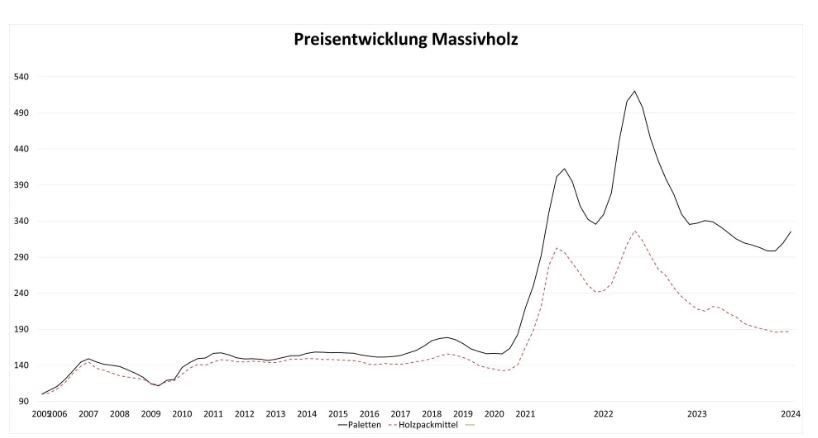 Pallet wood prices continue to rise at the start of the year. Last year¡¯s trends in the purchasing prices of packaging wood continued in January. While pallet wood is seeing a modest upswing in Germany, prices for wood-based materials keep falling. THE HPE - WOOD PRICE INDEX FOR SAWN TIMBER AND WOOD-BASED MATERIALS FOR WOOD PACKAGING AND PALLETS The price index for sawn timber and wood-based materials for wooden packaging and pallets is determined by the Bundesverband Holzpackmittel - Paletten - Exportverpackung (HPE) e.V. in co-operation with the Rheinische Friedrich - Wilhelms - Universität, Bonn. The individual indices reflect the development of the purchase prices of the domestic and foreign sawn timber and wood-based material ranges used in the industry. Other additional cost factors, such as for quality grading, are not included. Source: hpe.de |