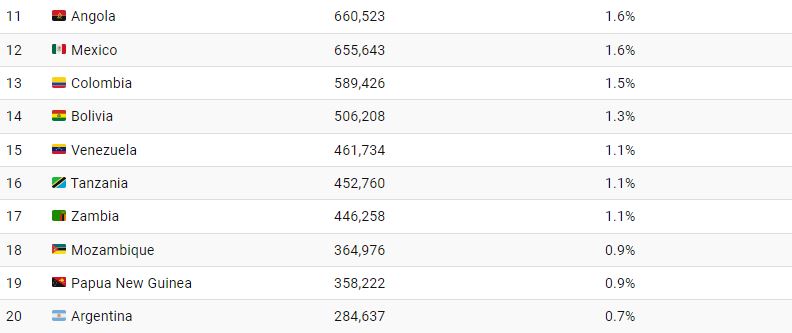 Top 15 Countries with the