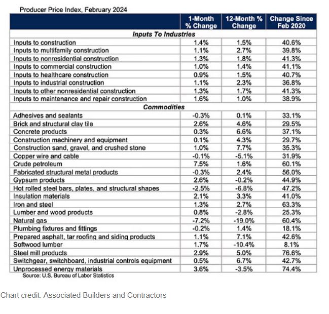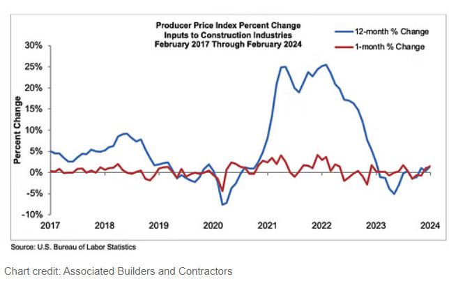 A new analysis of the latest U.S. Bureau of Labor Statistics Producer Price Index data from the Associated Builders and Contractors (ABC) has shown an increase in the cost of construction input prices of 1.4% for February.