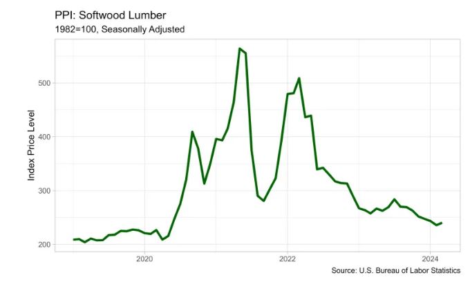 Softwood Lumber prices increased on a month-over-month basis for the first time since July of 2023, according to the U.S. Bureau of Labor Statistics.
