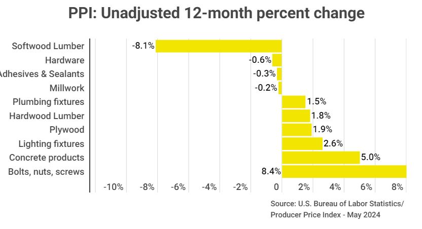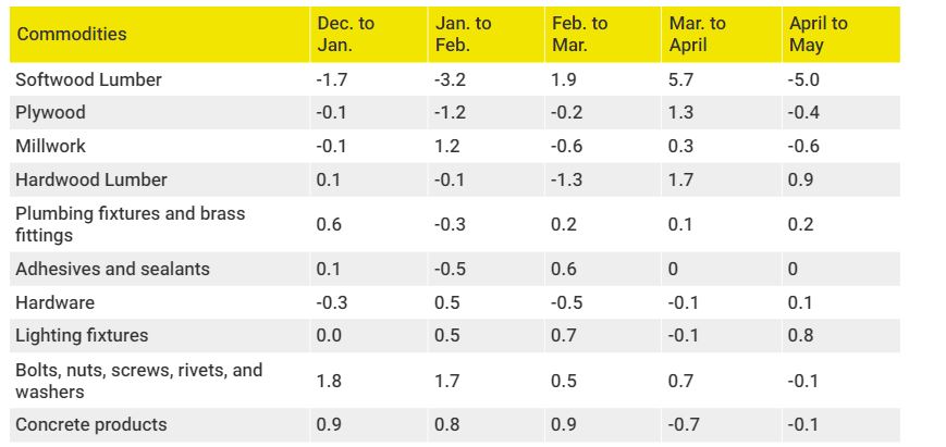 The Producer Price Index for final demand declined 0.2 percent in May, seasonally adjusted, the U.S. Bureau of Labor Statistics reported.  Overall, the Producer Price Index declined in May. So did Softwood Lumber.