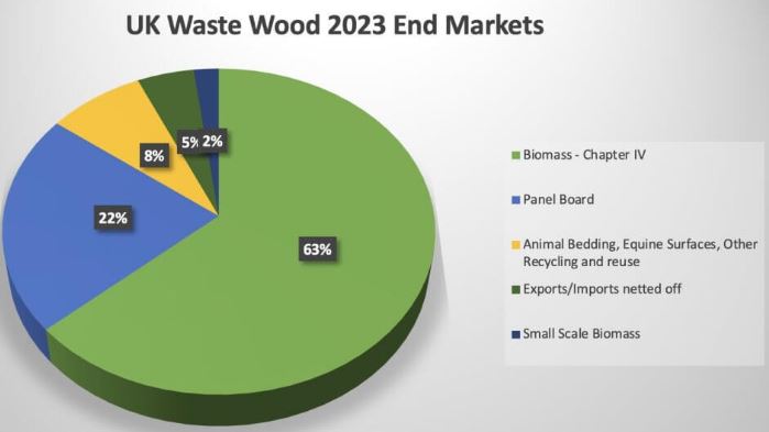 Over 97% of UK waste wood was sent for processing in 2023, the highest level to date, according to the latest annual statistics published by the Wood Recyclers¡¯ Association (WRA). The data indicates that while total UK waste wood arisings remained constant last year at approximately 4.5 million tonnes, the amount processed edged upwards from 4.312 million tonnes in 2022 to 4.408 million tonnes (equivalent to 97.9% of total arisings). This continues the year-on-year pattern of growth since the market was temporarily disrupted by covid in 2020, with well-established markets for all waste wood. The data is produced by the WRA using the results of its annual survey of members which are extrapolated and combined with other data sets, to produce total UK figures. WRA members accounted for 3.92 million tonnes of waste wood processed ¨C representing approximately 90% of the market. Large-scale biomass continued to be the largest user of waste wood in 2023, accounting for 63% of wood processed (2.8 million tonnes). This is up 2.6% from 2022 and demonstrates the important role that waste wood biomass plays in delivering secure, low-carbon, baseload power. Panel board remained the second largest user of waste wood, accounting for 22% (963,000 tonnes) of wood processed. The represents a slight (5%) decrease compared to 2022, due to a depressed housing market which saw overall production reduce alongside the closure of the West Fraser South Molton manufacturing plant. Animal bedding, equine surfacing, other recycling and reuse increased during the year to 350,000 tonnes, representing 8% of wood processed. This was up 9% year-on-year as the animal bedding sector recovered from the impact of avian flu in 2022. Pallet refurbishment and reuse of wooden items through local authority reuse hubs also increased and is something the WRA is hoping to be able to report on in the future. Julia Turner, executive director of the WRA, said: ¡°We are delighted to report another record year for waste wood processing which shows that supply and demand is now well balanced and we have well developed markets for all waste wood. ¡°We are particularly pleased to see a healthy increase in wood being sent for animal bedding, equine surfacing, other recycling and reuse and hope this will increase even further in future if we are able to include all the wood sent to reuse hubs and pallet reuse. ¡°The waste wood market is well positioned for 2024 with environmentally compliant markets for all domestic waste wood arisings. We are confident that as demand reaches full capacity, the remainder of unprocessed wood will find its way into formal rather than informal markets, providing the best environmental outcome for this valuable resource.¡± Source: WRA |