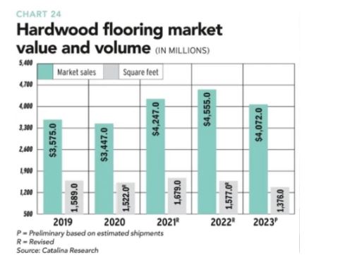 U.S. floor coverings sales declined in 2023 after two years of relatively strong growth, according to Catalina Research. Rising interest rates resulted in a declining housing market which caused flooring purchases to drop. Total U.S. housing demand (resales, new starts and manufactured home shipments) decreased 28.6 percent between 2021 and 2023 as mortgage interest rates surged by 129.4 percent. Housing demand drives floor covering spending since some 60 percent of the total market comes from homeowner and builder purchases. Meanwhile, commercial market sales opportunities remained on an upward trend since nonresidential building construction spending continued to increase at double-digit rates. Commercial market growth, however, could not offset the decline in residential markets. Category sees a decline after two-year uptick While hardwood remains a sought-after floor, macroeconomic changes along with competitive products in other categories led to decline in sales for 2023. According to Catalina Research, ¡°After two years of relatively strong growth, rising interest rates resulted in a declining housing market which caused flooring purchases to drop. The wood flooring sector experienced some of the sharpest sales decline in the industry in 2023.¡± 2021 and 2022 sales were propelled by post-pandemic activity. Explained Mannington¡¯s John Hammel, senior director of hardwood and laminate, ¡°An increase in consumer demand associated with being at home during the pandemic.¡± Mohawk¡¯s David Moore, senior product director of wood and laminate, noted, ¡°2021 and 2022, from an uptake perspective, was driven by that COVID, post-COVID, remodel activity. Consumers weren¡¯t traveling, they weren¡¯t eating out, they weren¡¯t doing many things they would typically spend their discretionary money on. They were also spending a proportionally higher amount of time inside of their homes. So, there was a high interest in remodeling.¡± Behind the Numbers According to Catalina Research, wood flooring dollar sales may have dropped by 10.6 percent to $4.1 billion. The report also stated that ¡°square foot sales could have dropped by 12.7 percent to 1.4 billion. In 2023, wood flooring¡¯s share of total floor covering dollar sales could have been 11.9 percent and 5 percent of total square foot sales. This is down from 12.4 percent and 5.4 percent, respectively, in 2022.¡± Much blame can be assigned to overall economics. Noted Hammel, ¡°Inflation and high interest rates have dampened consumer demand over the last couple years. This can be said for all flooring categories. For wood specifically, the lower price-point products have seen the greatest decline. The higher you go up the price curve, the less impact these macroeconomics have on the consumer.¡± Brian Parker, vice president, product management, solid hardwood, AHF Products, explained further, ¡°With inflation and Americans having to spend more on the necessities ¡ª food, gas, etc. ¡ª that has limited their discretionary funds.¡± Another factor is competition from other flooring categories. CALI¡¯s Doug Jackson, president, offered, ¡°The growing popularity of alternative flooring materials like luxury vinyl and laminate has diverted consumer interest.¡± As well, Catalina reported, ¡°Manufacturers and marketers also continue to see increased competition from rigid core LVT, which is a direct competitor to engineered wood flooring. Wood flooring also has above average dependence on the builder and residential replacement markets. Wood flooring sales were especially hurt by the nearly 19 percent drop in existing home sales, which is the major driver of homeowner flooring replacement projects.¡± Finding Opportunity Hardwood sales remained highest with residential builders, residential replacement and commercial new construction in 2023 presenting opportunity. ¡°The hardwood industry should focus on innovation with the goal of developing more durable and cost-effective products. Enhancing supply chain efficiencies can help reduce costs and improve availability,¡± suggested Jackson. Shaw Floors¡¯ Kyle McAllister, director of hardwood, added, ¡°The hope for hardwood lies in its enduring appeal and sustainability. People seeking natural, authentic materials will continue to prefer hardwood, which has been trusted for centuries.¡± AHF Product¡¯s Parker pointed to hardwood¡¯s beneficial features. ¡°It does some things other categories can¡¯t do. [For example, hardwood] can be sanded, refinished and made to look new again. It¡¯s about marketing the unique attributes ¡ª the features, benefits, performance and value.¡± Looking Ahead With the highest average value per square foot of hardwood in the past six years, there is still hope for the category. Mannington¡¯s Hammel voiced, ¡°The hardwood category will always be around. There will always be a demand for the real thing. As interest rates decline, demand will start to improve.¡± While the average price per square foot increased to $2.96 for 2023 compared to $2.17 in 2019, it also increases the value of the home. ¡°Engineered hardwood floors are one of the only floor covering choices that consumers can view as an investment. They¡¯re not having to replace their floors and figuring out how much that¡¯s going to cost them. They¡¯re making an active investment in their home by putting in wood flooring, which is going to drive home price appreciation up to ¡ª what our research suggests ¡ª 10 percent,¡± explained Moore. Agreeing, Milton Goodwin, vice president of product management on engineered hardwood at AHF Products added, ¡°We are seeing a comeback to the tried and true ¡ª whether it¡¯s solid or engineered [hardwood]. Wood, along with porcelain, are considered the forever floors. Meaning that when people come in wanting to purchase a wood floor, they are not going to buy another floor. They are going to put a wood