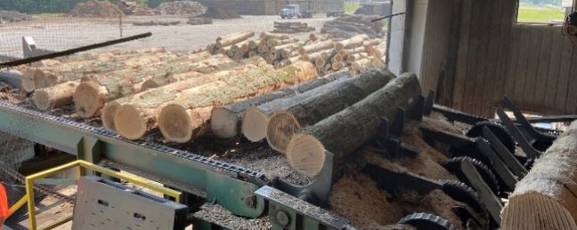 Logs going through the debarker at Doll Lumber Co. For one thing, summer adds unique challenges for different types of wood, said Eric Doll, sales manager for Doll Lumber Co. in Trumbull County and current president of the Ohio Forestry Association. ¡°I¡¯ve got a lot of poplar logs right now and it¡¯s not something people want; part of that¡¯s the time of the year as well. White wood is not going to keep very well in the summer. It¡¯s a product that is prime for spoilage particularly, when it¡¯s 90 degrees out, so those hickory logs are going to dry out and split, those maple logs are going to start getting log stain on them and turn blackish, and then the logs will keep for certain amount of time but then as soon as you saw it, that speeds up the spoiling process,¡± Doll said. ¡°If I get an order for maple this time of year, I have to ship it by Wednesday because it needs to be on sticks and into a pre-dryer; it can¡¯t sit over the weekend. So if we have a pile of maple logs and pile of red oak logs, I have to cut the maple on Monday and then cut the red oak the rest of the week, so I can cut the maple, get it shipped, and get it delivered. If I cut the red oak first and then I cut the maple, then I can¡¯t ship the maple on a Friday because they can¡¯t get it processed through the receiving facility. Summer is also when trees are growing and the bark is loose, so by the time the log gets here, especially hickory or poplar, it¡¯s lost a lot of its bark and is more likely to dry out in the sun, crack, and stain.¡± Doll Lumber is a forestry service and sawmill operation in Southington currently managing the challenges of summer production and the broader issues of tough times in general for sawmills. They are an Ohio Master Logger Company that manages their own procurement forester and logging crew, subcontract logging crew to bring in logs, and a green sawmill. They sell mostly green lumber for pallet cants from the center of logs, 1 x 4s, 1 x 6s, and railroad ties but also have a retail component for dimensional green lumber and kiln dried lumber sold locally to craftsmen, high school wood shops, small cabinet or furniture manufacturers, and woodturners. The system at Doll Lumber is a little different compared to most sawmills. Instead of having logging crews buck logs at the log landing, harvested timber is cut tree-length and trucked to the mill for customized cuts and merchandising. This system allows Doll Lumber to maximize the value of the logs based on various existing orders and market conditions, creating greater efficiency. They can better control their supply, reduce time for their logging crews in the woods and on the landing, and eliminate much of the waste on the property for the landowner. Like most industries, efficiency is critical to profitability, Doll said. ¡°In the 80s when my dad (former OFA Logger of the Year, Jim Doll) bought [the mill], there were six or seven small mills all feeding one grading line green chain. Then he slowly began to streamline that to fewer, but more efficient, mills to where in the mid-90s we were running two sawmills, a green chain, and a separate debarker. The one mill we have now was installed in 2002 and with that you have a loader operator who puts the logs in, a debarker operator, sawyer, edger, grader who¡¯s also running the trimmer operation, and then two or three guys stacking,¡± Doll said. ¡°We¡¯ve eliminated two instances of the loader moving material during production and condensed the process so you no longer need as many people to operate, which is really important in this labor market and fuel costs and everything else. Anything you can do to minimize handling and costs is important.¡± Unfortunately, the current market is really tough for sawmills in the U.S. ¡°We just have to keep trying to find different markets. We¡¯re cutting more rail ties than we ever have before because that¡¯s a market that¡¯s still strong. It¡¯s less production to cut one 7 x 9 than it is to cut two 3.5 x 6s and grade lumber out of that board, so you¡¯re reducing your production cost while you¡¯re also creating a higher value product than what you¡¯re getting out of the center of that log if you¡¯re cutting pallet cants, low grade or deficient grade lumber, or 1 x 4 and 1 x 6. Anything you can do to produce a better product for less cost, you¡¯ve got to try to do it, particularly in these markets when margins are so slim,¡± Doll said. ¡°This certainly isn¡¯t the first time markets have been difficult for hardwood mills (e.g. the Great Recession in 2008), but coupled with the increased costs across the board, from logging costs to production costs to trucking, and the seemingly impossible task of finding reliable skilled labor, it¡¯s more challenging now than it was in 2008. On top of that, the market is not bearing out any of those challenges with the return on the product that you need.¡± Doll attributes some of the difficulty to a reduction in consumer demand. ¡°Production and supply have been depressed over the last 2-3 years. There have been a lot of changes in architectural trends and the addition of many substitute and imitation products that are hurting the hardwood market,¡± he said. ¡°The good thing is pallets and railroad ties are made from wood, but those are the low-grade products we make; they happen to be in demand and the price on those is holding to a degree. But because of the lack of demand for high quality products, the overall market is still not what it was roughly 25 years ago. Back then, cherry was triple the price it is now, even in 1998 dollars, let alone adjusting for inflation. White oak is the one species that seems to be holding at a high demand, but demand for others like red oak, hard and soft maple, and poplar goes up and down. The costs have gone through the roof compared to what it was 25-30 years ago, but the price of the product hasn¡¯t.¡± 