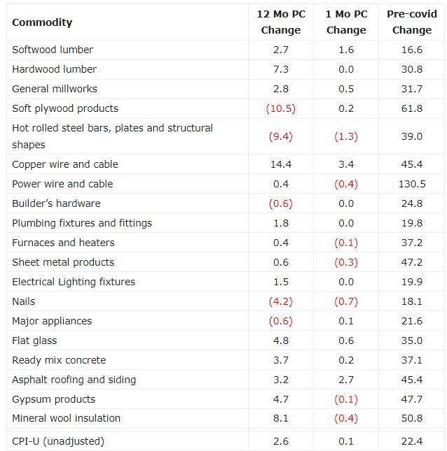 US construction materials prices