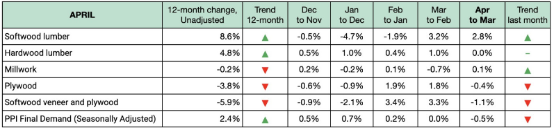 continuing an upward movement after a 3% rise in March. Hardwood