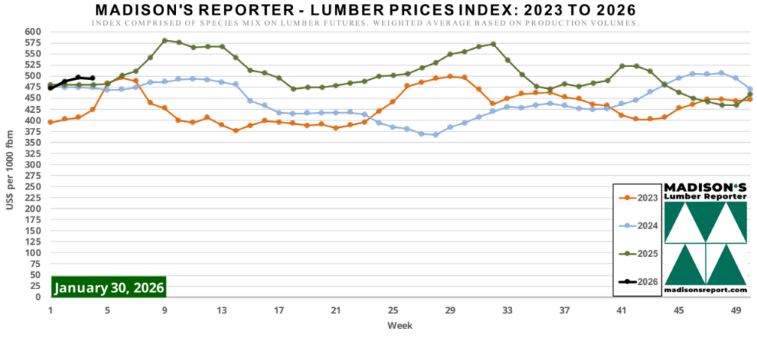 The Madison’s Lumber Prices Index for the week ending January