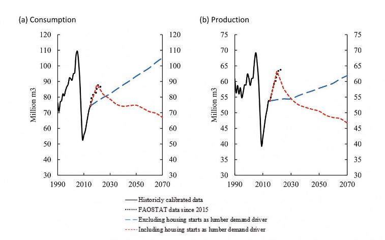 - Decline Through 2070: U.S. softwood lumber consumption is
