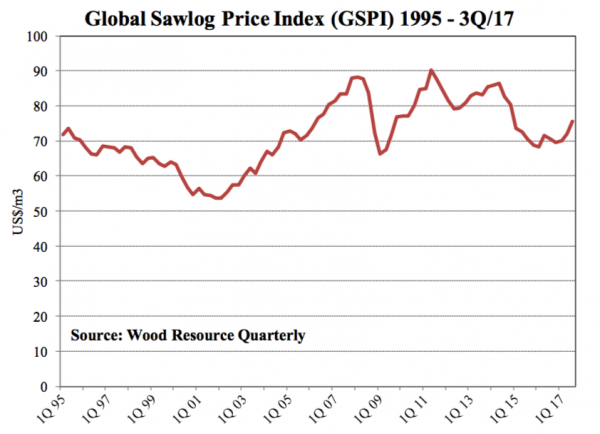 The Global Sawlog Price Index (GSPI) has gone up for three